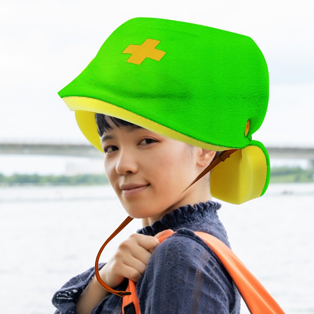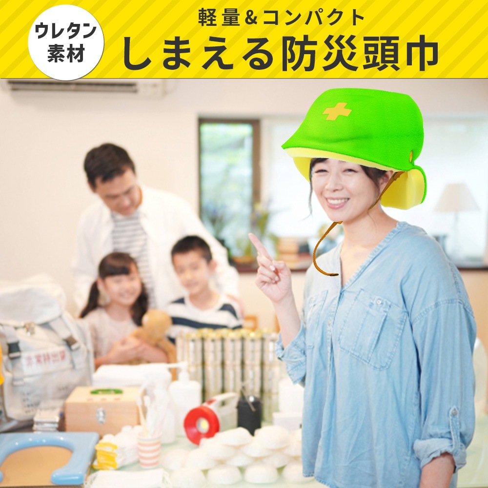 【送料無料】ウレタン防災頭巾 カエル災害安全帽 難燃スポンジ 軽量 コンパクト 防災頭巾 幼児 子供用 防災ずきん 避難グッズ 小学生 大人 本棚に しまえる 防災用品 地震 保育園 幼稚園 _FF