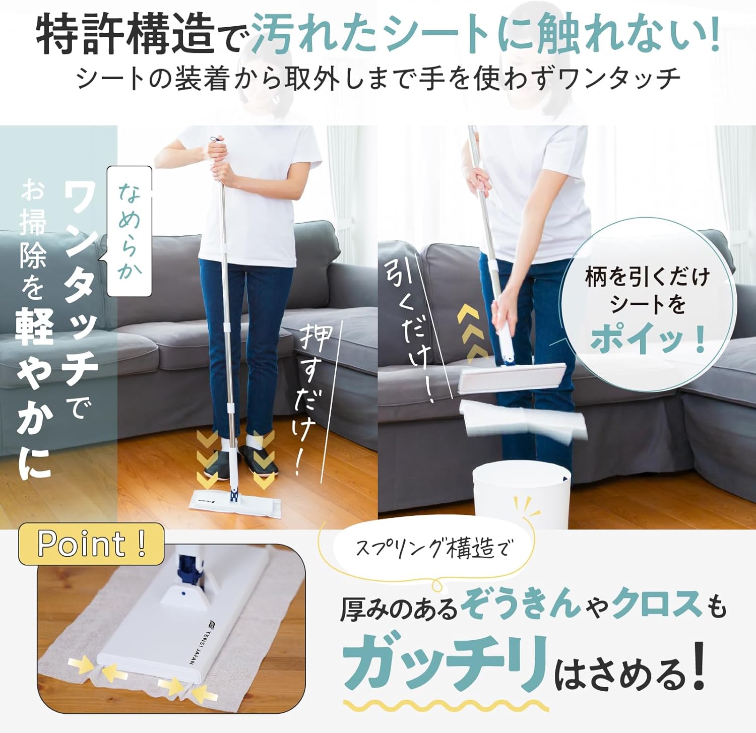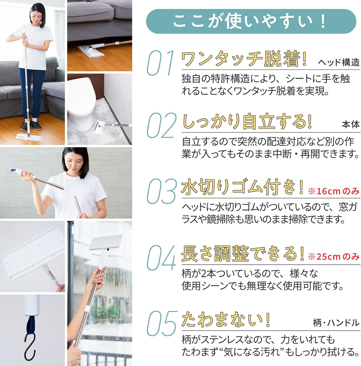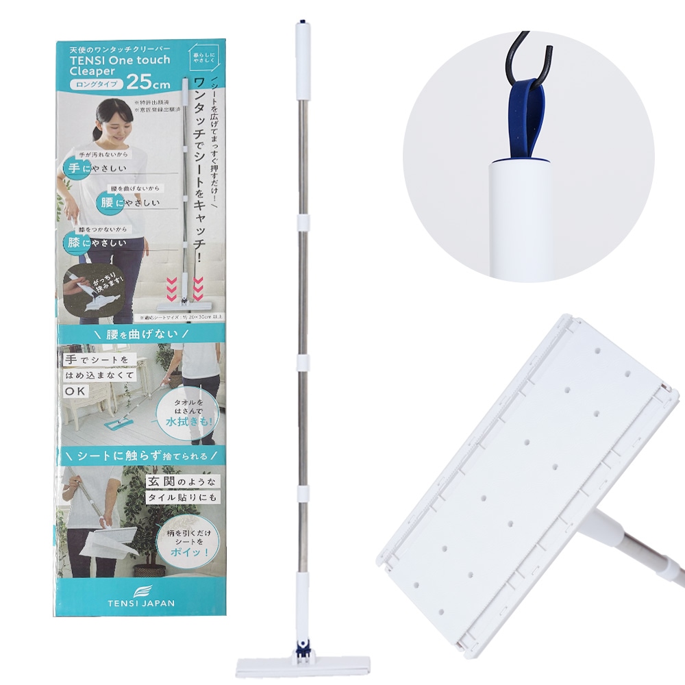 【送料無料】 天使のワンタッチクリーパー ワンタッチ着脱 手を汚さず 拭き掃除 フロアワイパー 自立型 スプリング内蔵 ぞうきん対応 高耐久 360度可動 窓ふき トイレ掃除 25cm 16cm DCT-1004