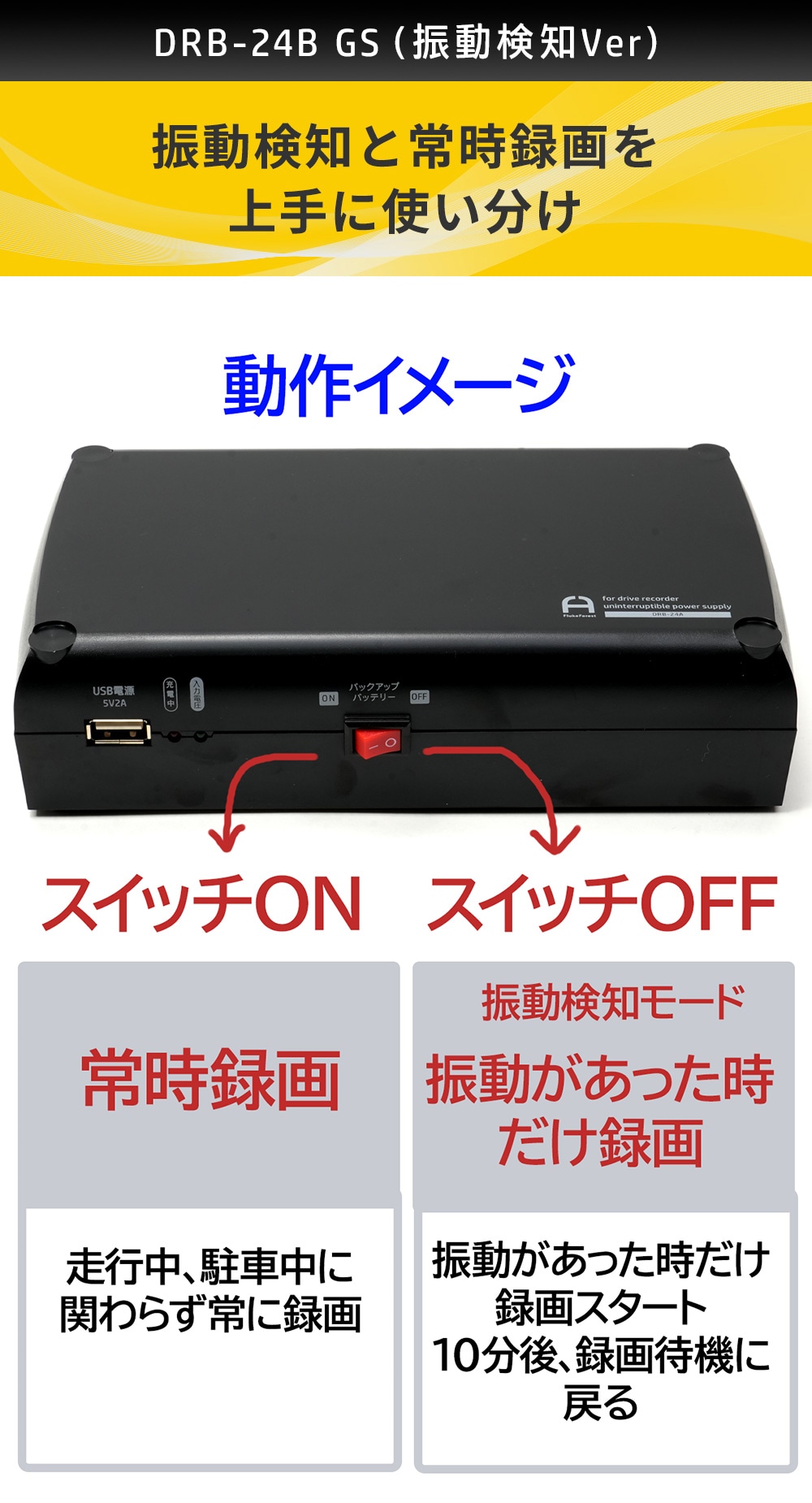ドライブレコーダー用 車用 バックアップ電源 UPS アイドリングストップ バッテリー上がり 駐車監視 無停電電源装置 DRB-24B メーカー直送 6ヶ月保証