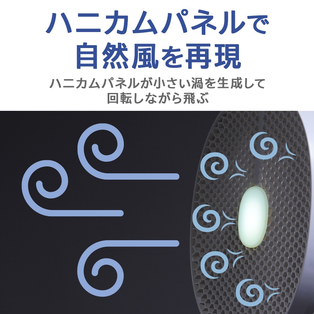 ハニカムパネルで自然風を再現。扇風機で心地いい風を発生。
