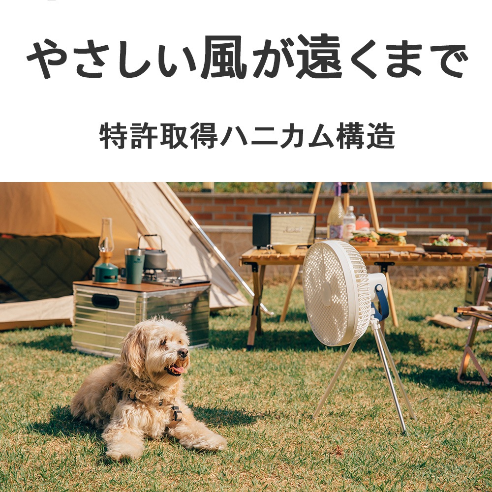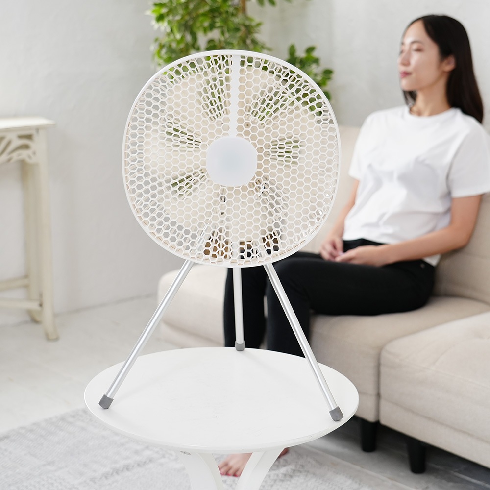 ハニカムパネル採用 置き型 アウトドア対応扇風機 天吊り 三脚取付 静音 室内 屋内 リビング 寝室 キャンプ アウトドア 360度回転 上下 扇風機が苦手な人 優しい風 オシャレ ひんやりグッズ FF-CL009 4573602760277