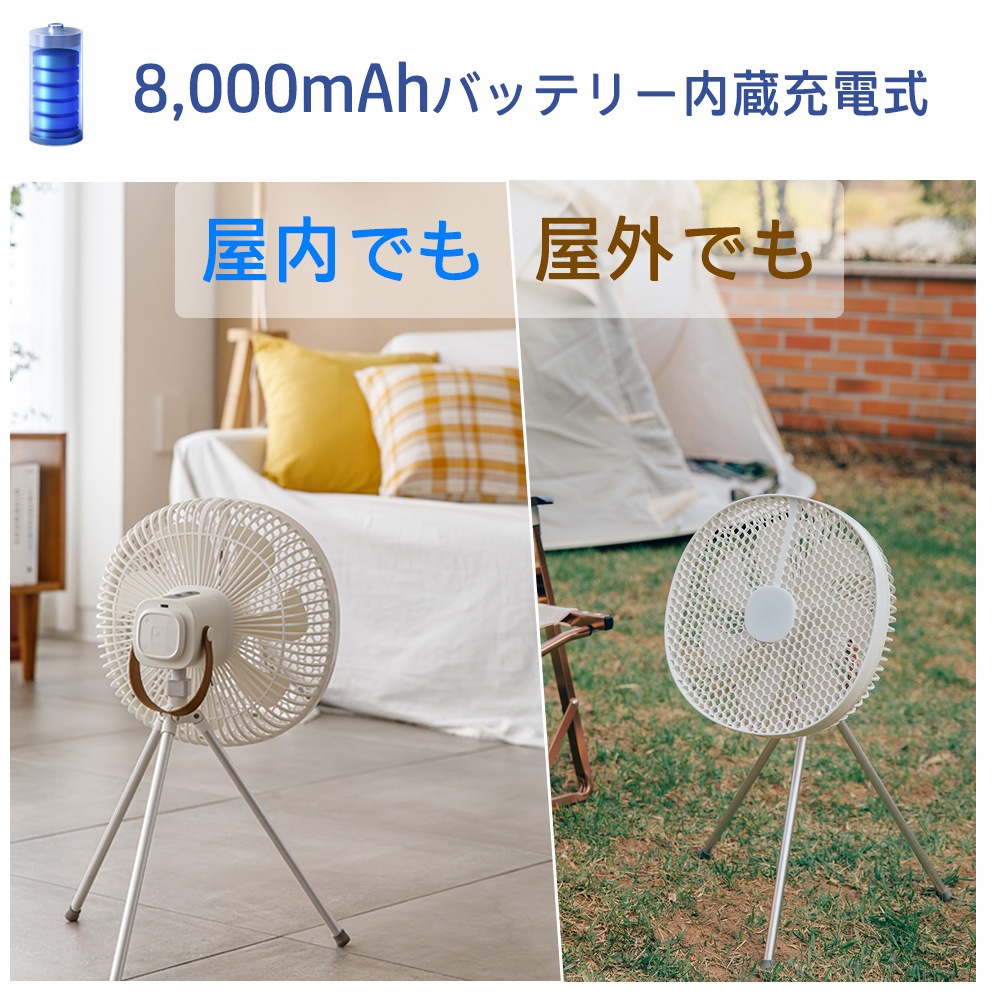 8000mAhのバッテリー内蔵で室内でも屋外でも使用可能。