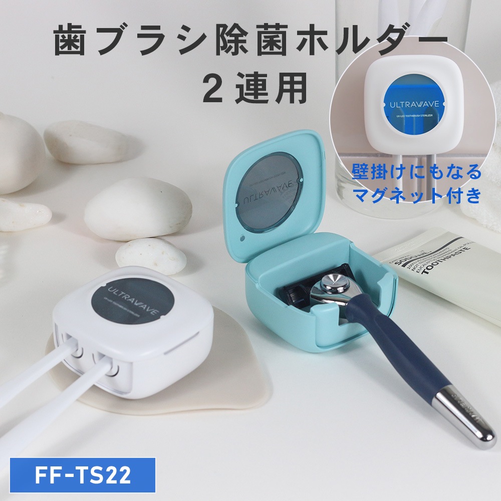 ULTRAWAVE 歯ブラシ除菌ホルダー 2連 歯ブラシ除菌器 シェーバー対応 歯ブラシ 人気 オシャレ はみがきグッズ 除菌 携帯 FF-TS22 _FF