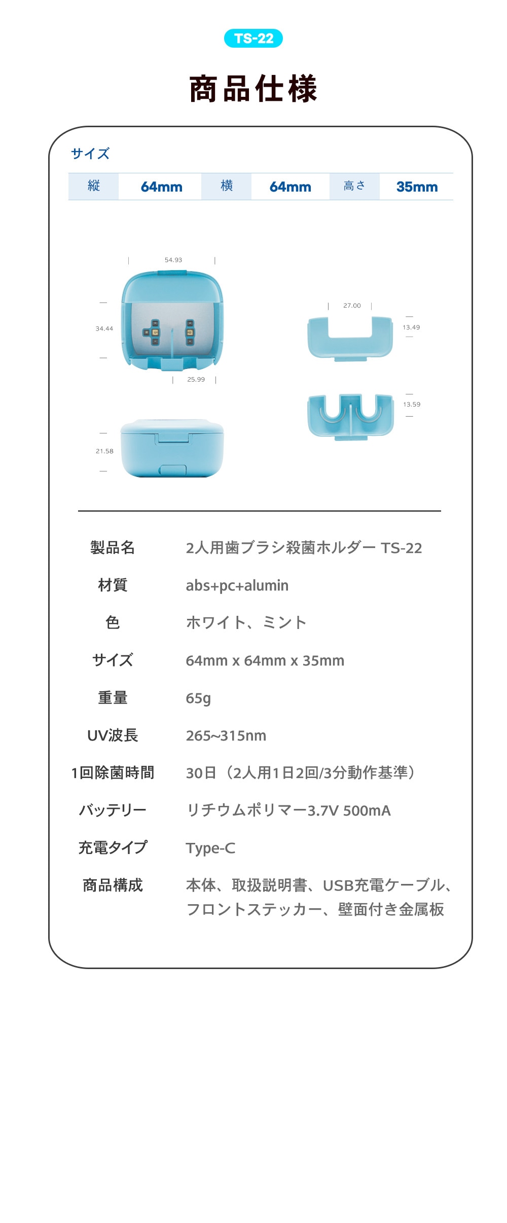 品名:UV-C LED 歯ブラシ除菌ホルダー FF-TS22