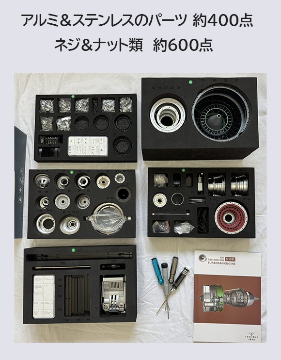 1/10 航空機ジェットターボファンエンジン模型 組立キット|総パーツ数1,000+ 金属製 フルオープン構造 電動駆動モデル