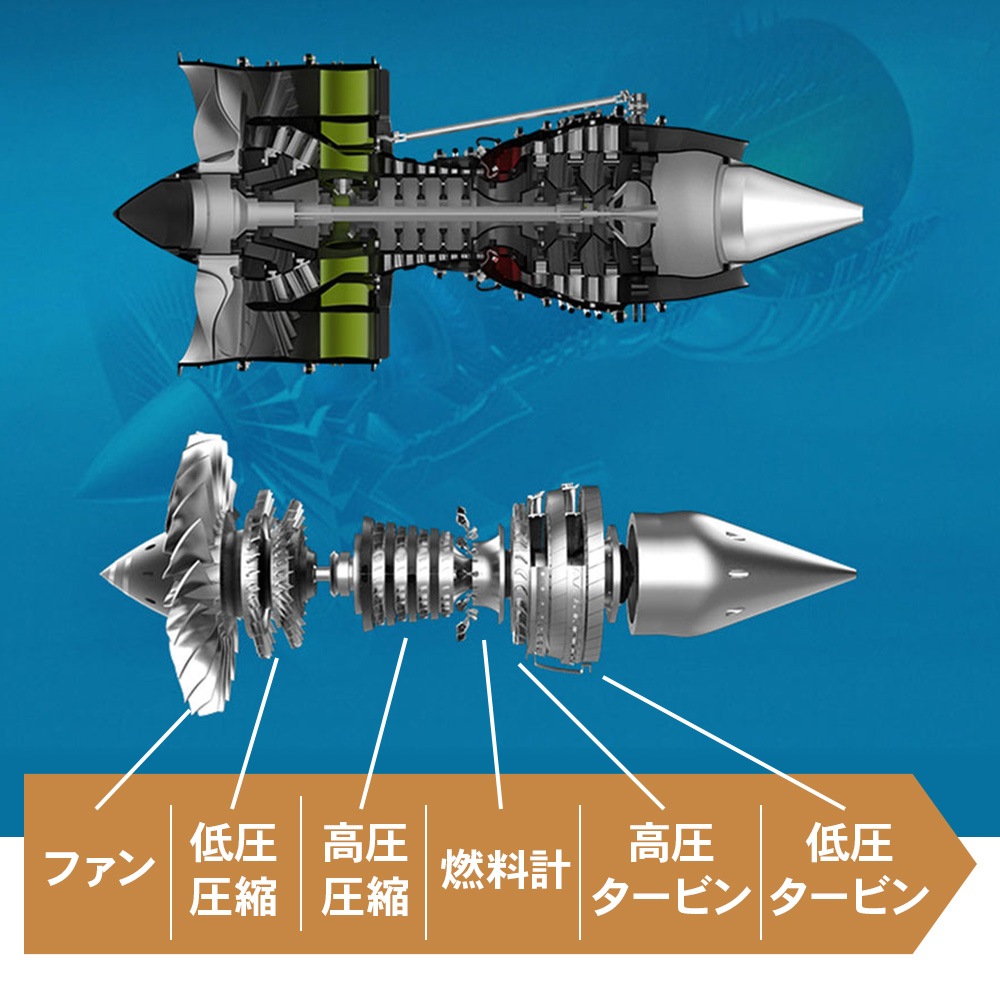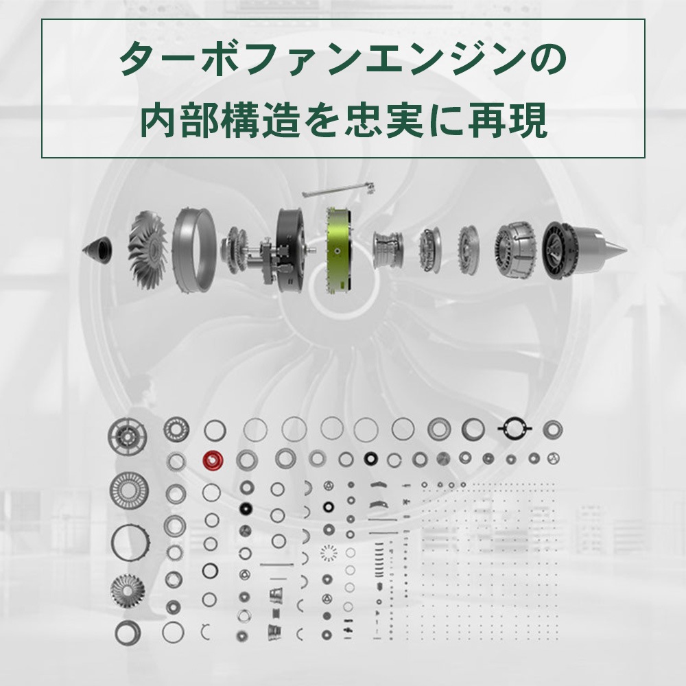 ファンブレード、高圧コンプレッサー、燃焼室、タービンに至るまで、実機の内部構造を忠実に再現。一つひとつのパーツを組み上げるプロセスは、まさにエンジニアリングの疑似体験です。